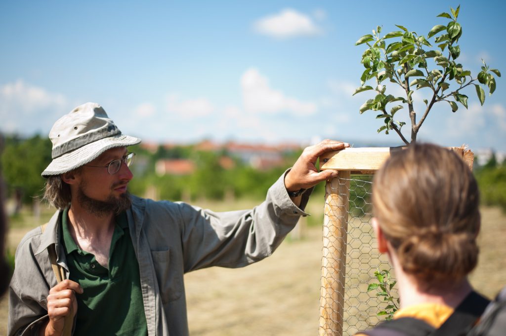 Potulný sadař DOMINIK GROHMANN se už více než 5 let věnuje extenzivnímu ovocnářství. Pomáhá lidem i krajině s péčí a výsadbou ovocných stromů. Snaží se posilovat vztah lidí ke krajině skrze ovocné stromy. Lektoruje kurzy, sází stromy a citlivě je řeže.